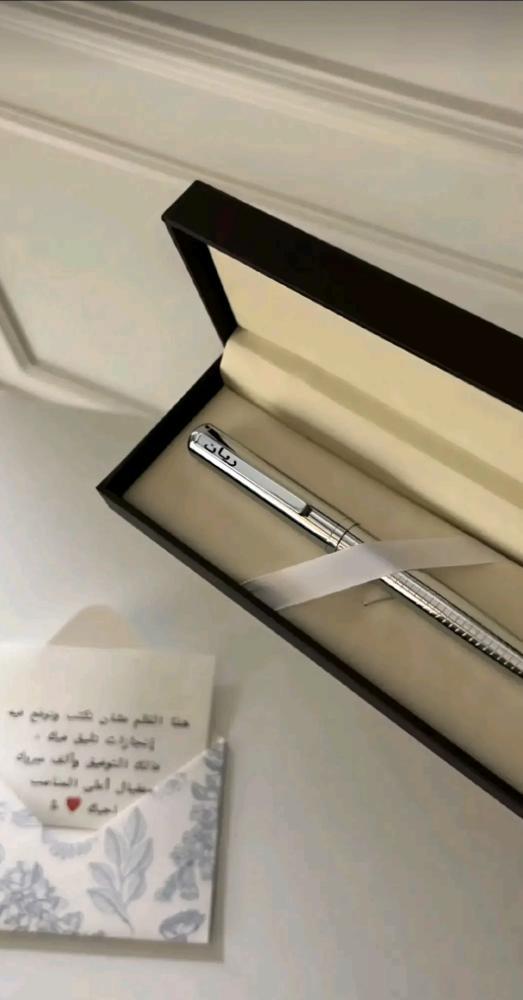 قلم حبر مع الاسم بتصميم فني بأي لغة حسب الطلب بجودة عالية وتوصيل سريع . قلم كتابة متوفر بطلاء ذهبي أو فضي مريح لليد أجمل أقلام هدايا رجالية