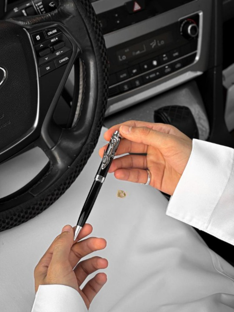 قلم حبر مع الاسم بتصميم فني بأي لغة حسب الطلب بجودة عالية وتوصيل سريع . قلم كتابة متوفر بطلاء ذهبي أو فضي مريح لليد. من ريفا أجمل أقلام هدايا رجالية